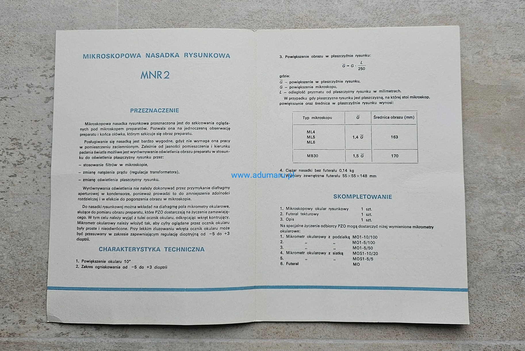 PZO Polskie Zakłady Optyczne - Mikroskopowa nasadka rysunkowa MNR2 - folder reklamowy z PRL-u