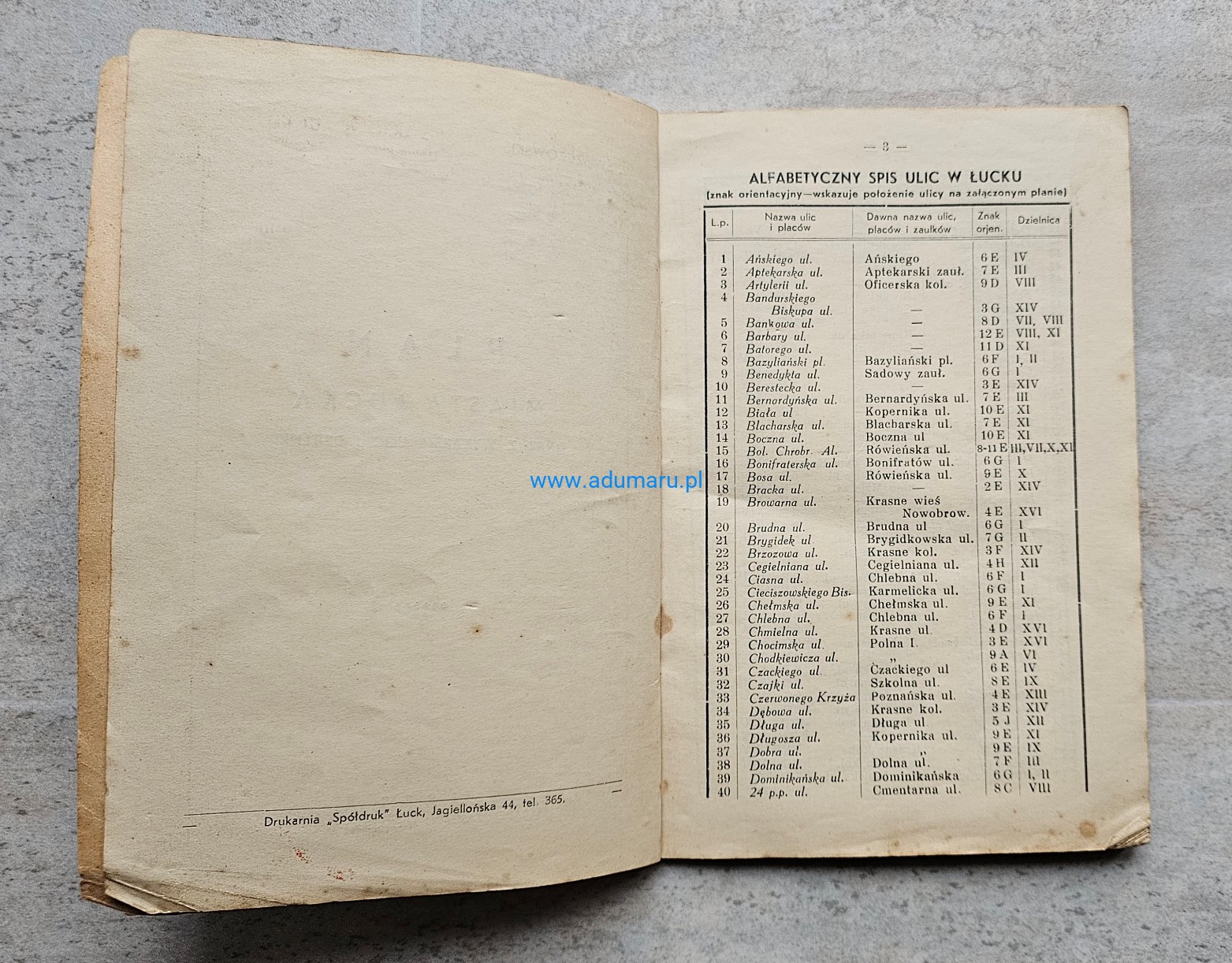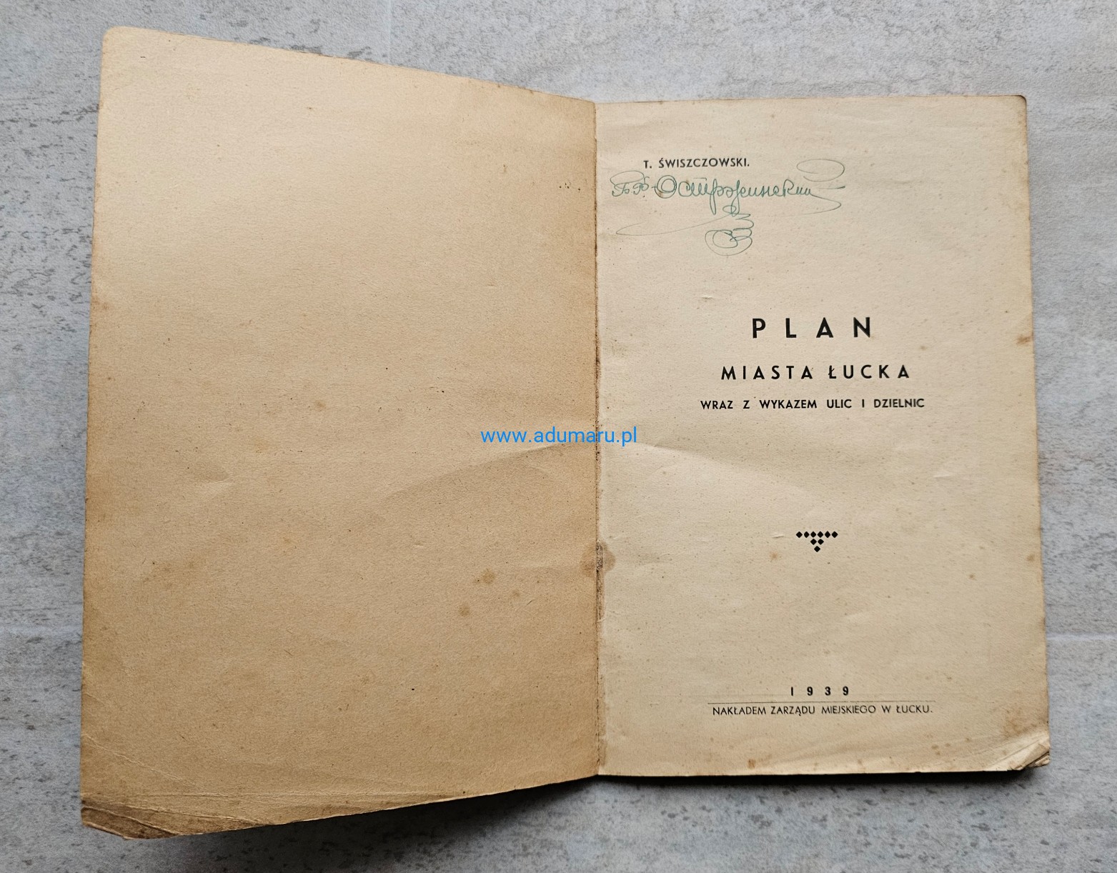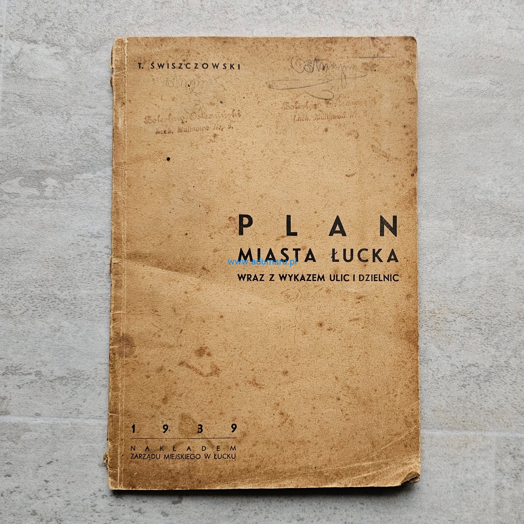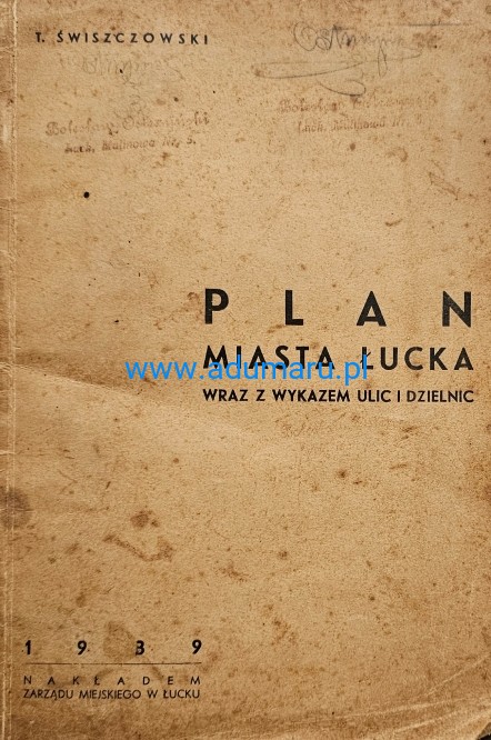 Świszczowski - Plan miasta Łucka wraz z wykazem ulic i dzielnic - wyd. Łuck 1939